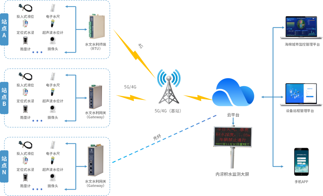 实时数据采集:通过水位计、雨量筒等设备实时采集道路积水深度、降雨量等数据,并通过高清摄像头捕捉现场视频图像。