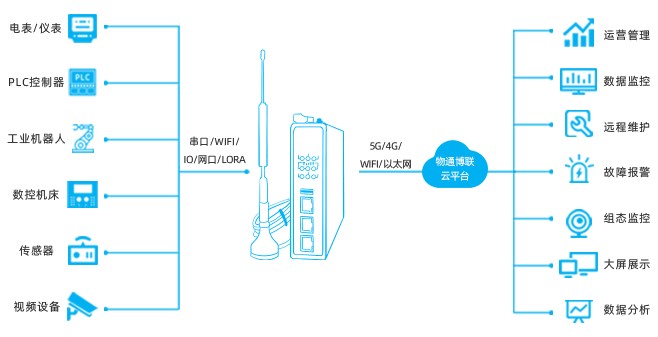 兼容多种通信协议,如OPC、ModbusTCP、IEC104等,实现对不同控制器PLC的数据采集,支持5G/4G上网方式,实现风电机组的全面监控。