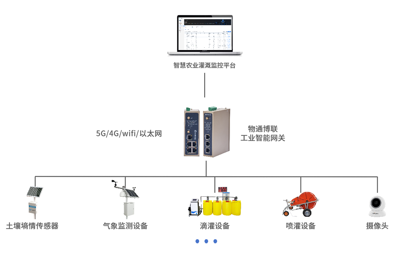 通过物通博联的工业智能网关采集土壤水分含量、气象数据(如降雨量、蒸发量等)。将采集到的数据传输至智慧农业灌溉监控平台,平台对数据进行实时分析和处理,根据土壤墒情和作物需水规律分析灌溉需求,自动控制灌溉设备(如滴灌、喷灌设备等)进行精准灌溉。同时,平台具备水量统计管理功能,支持远程灌溉管理和灌溉方案优化。