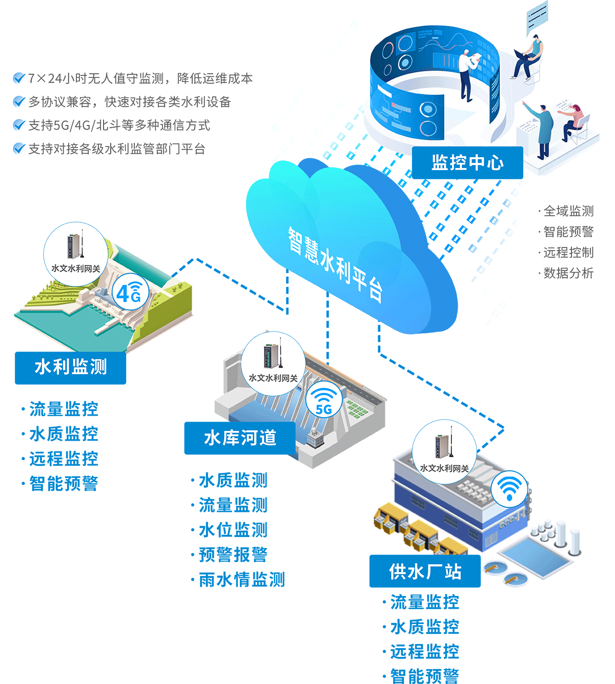 针对智慧水利不同应用场景,提供定制化的解决方案