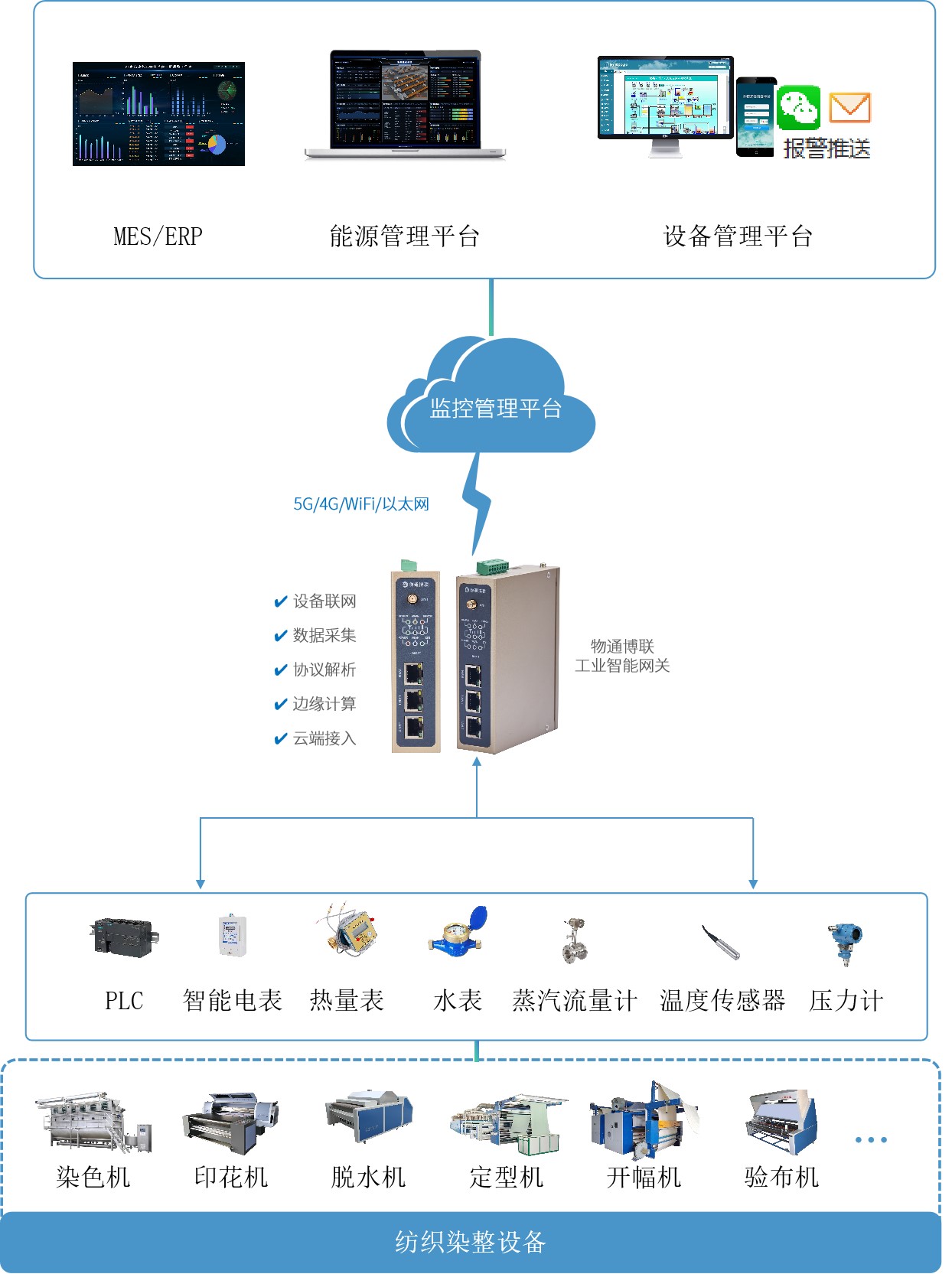物通博联工业智能网关支持接入PLC、仪器仪表、传感器、数控机床、工业机器人等设备,实现“一对多”数据采集,同时具备断点续传能力,能够有效替代人工抄表,确保数据完整。