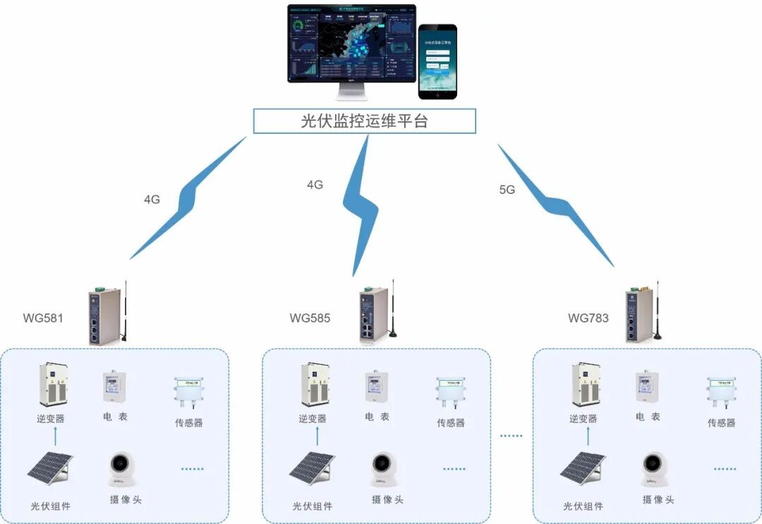 通过接入智能电表、光伏逆变器等设备,物通博联工业智能网关能够实时采集有功功率、无功功率、视在功率及电压电流等数据,基于边缘计算规则计算功率因素、发电量等数据,并通过5G/4G等方式上报到光伏电站管理平台中,企业能够实现对各个光伏电站的设备状态、运营水平等监控与管理,及时发现异常并管理控制,有效提升管理水平与工作效率。